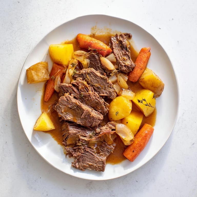Pin It The kitchen was quiet except for the low hum of the oven and the occasional bubble breaking through the surface of that dark, rich gravy. I'd spent weeks perfecting this pot roast recipe after my grandmother mentioned hers had never quite turned out right. There's something deeply satisfying about a dish that transforms tough meat into something tender enough to cut with a spoon.