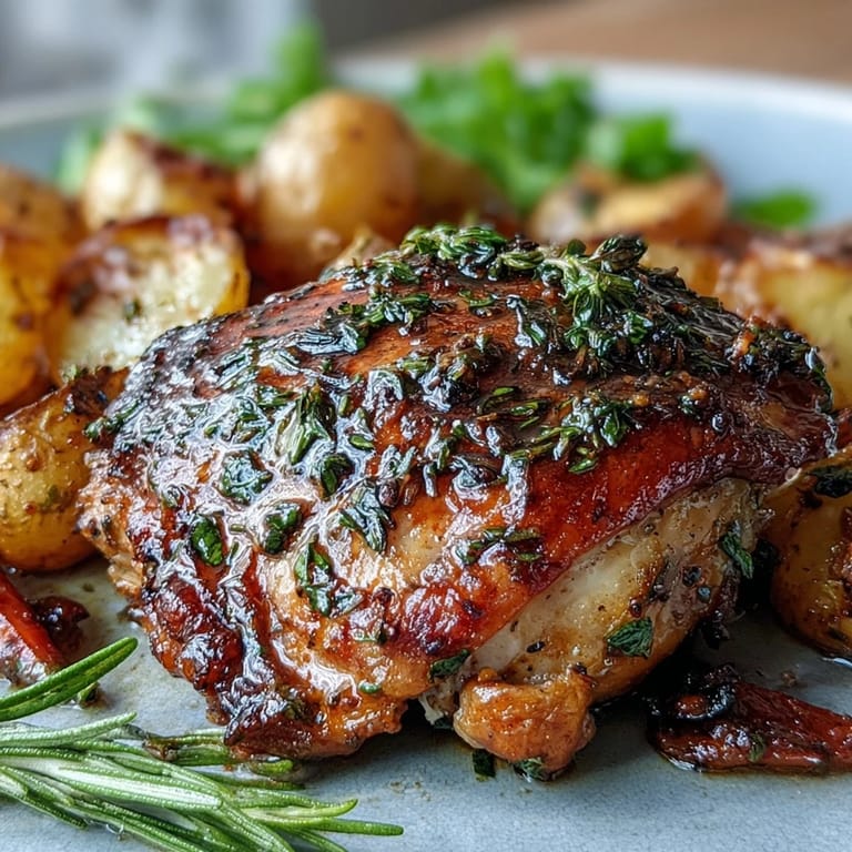 Pin It My neighbor knocked on the door one autumn evening with a handful of fresh herbs from her garden, insisting I needed to do something special with chicken thighs that night. What started as a casual weeknight dinner became the meal I now make whenever I want the kitchen to smell like a cozy restaurant and everyone at the table to actually slow down and savor something real. The beauty of this dish is how the skin gets impossibly crispy while the meat stays tender, and somehow the vegetables absorb all that golden, herby richness without any fuss.