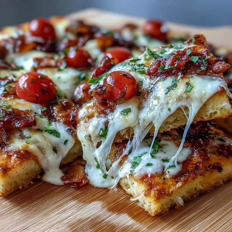 This recipe is wonderfully adaptable to your preferences and what you have on hand. Substitute rotisserie chicken for turkey if desired—it's an excellent way to use leftover chicken and saves preparation time. For a richer, smokier sauce, try replacing the Pecorino Romano with smoked Gouda or Gruyère cheese. If you prefer a vegetarian version, omit the turkey and bacon and add roasted vegetables like bell peppers, mushrooms, or zucchini. For extra heat, sprinkle red pepper flakes over the finished pizza. You can also use different flatbread bases such as whole wheat naan, garlic flatbread, or even cauliflower crust for a lower-carb option.