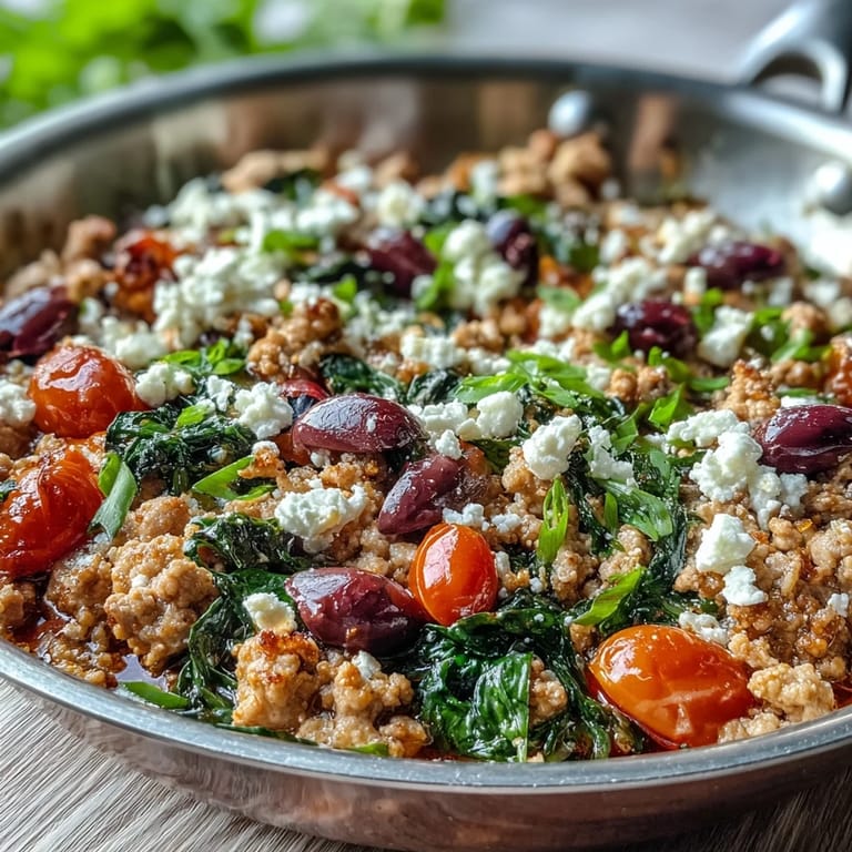 Pin It My sister texted me a photo of her fridge one evening: ground chicken, a half-empty jar of olives, and some tired spinach. She wanted dinner in under thirty minutes. I typed back a quick list of what to throw in a skillet, and twenty minutes later she sent me a picture of this dish with three fire emojis. That's how this recipe was born—not from a cookbook, but from a pantry raid and a time crunch. It's become my go-to whenever I need something that tastes like I tried, but didn't actually require much effort. The feta melts just enough to coat everything, and the olives give it that salty punch that makes you forget you're eating something healthy.
