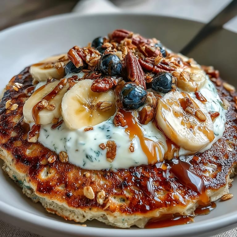 - Slide the pancake into a wide bowl, tear it into bite size pieces if you want, then pile on the yogurt, banana slices, berries, nuts, seeds, and granola in whatever order feels right. Drizzle the nut butter over everything, thin it with a splash of water if it is too stiff, and finish with honey, maple syrup, or a pinch of cinnamon.