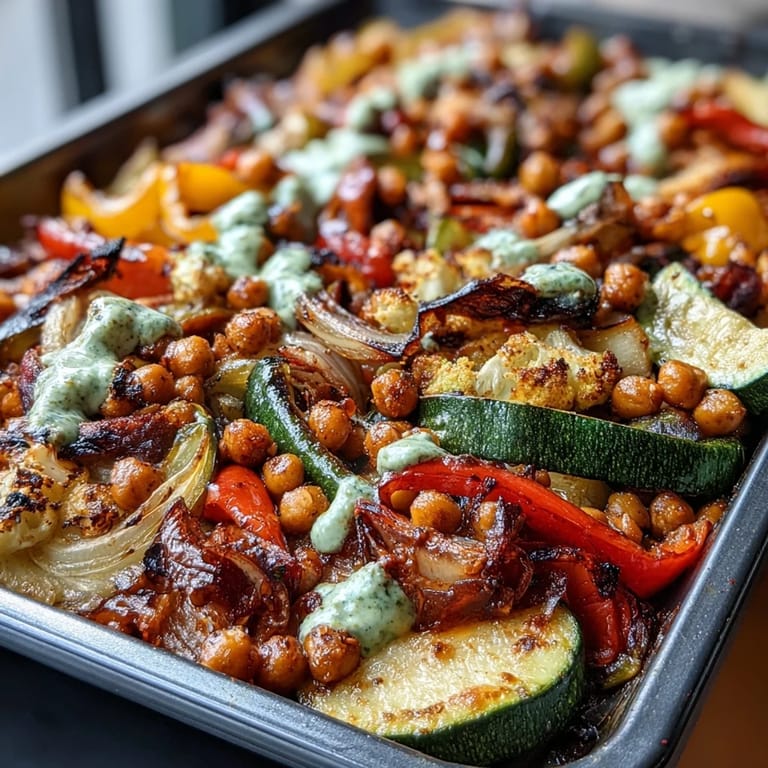 - Vegetables & Chickpeas: 1 red bell pepper (sliced), 1 yellow bell pepper (sliced), 1 green bell pepper (sliced), 1 large red onion (sliced), 1 medium zucchini (sliced into half-moons), 1 cup cherry tomatoes (halved), 1 (15 oz / 425 g) can chickpeas (drained and rinsed), 2 tbsp olive oil.