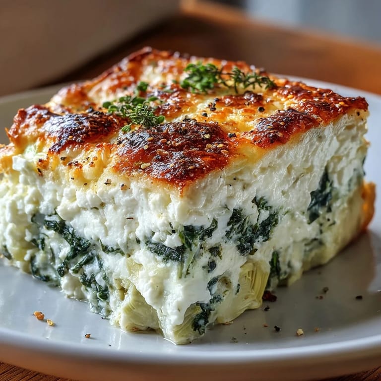 Pin It I needed something I could bake on Sunday and eat all week without getting bored. This spinach artichoke bake showed up in my kitchen during a phase when I was tired of the same grilled chicken and needed protein that actually tasted like comfort food. The first time I pulled it from the oven, the edges were crispy and golden, the center wobbly but set, and I realized I'd stumbled onto something that felt indulgent but kept me full for hours. It's become my go-to when I want something warm, creamy, and satisfying without the carb crash. Now I keep cottage cheese and frozen spinach stocked just so I can throw this together whenever the craving hits.