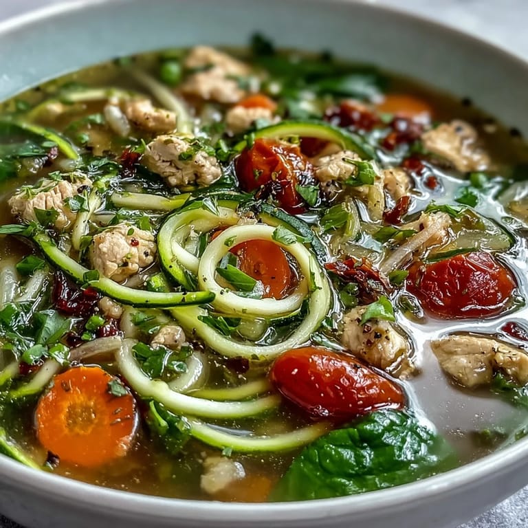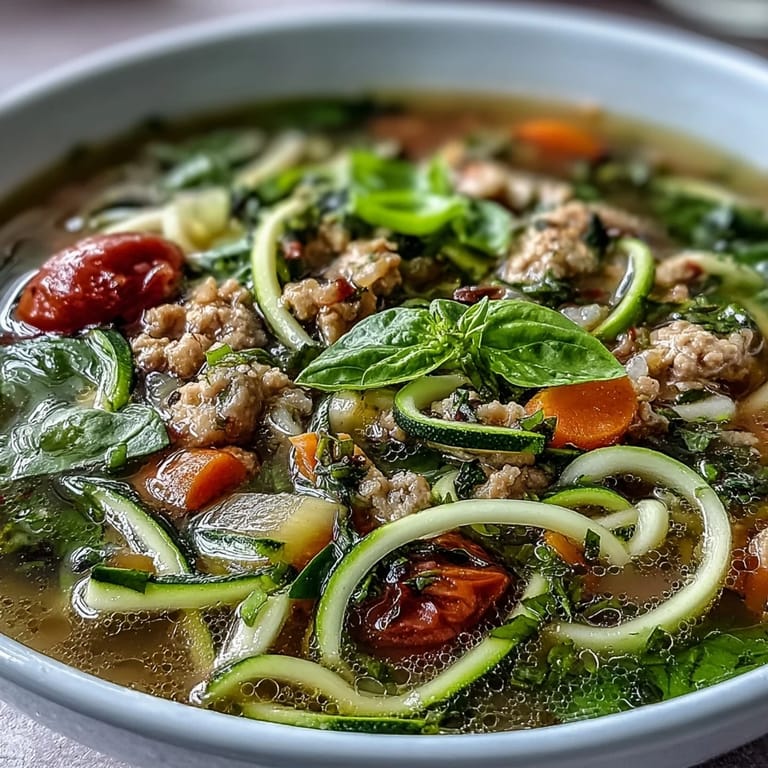 Pin It My sister called me one Tuesday afternoon asking for a soup recipe that wouldn't derail her new fitness routine, and I found myself spiralizing zucchini at the kitchen counter while she talked through her week. What started as a quick favor turned into something I now make whenever I want comfort food that doesn't weigh me down—turkey and vegetable broth simmering together, filling the kitchen with this warm, savory smell that somehow feels both indulgent and light. It's become my go-to when I'm cooking for myself on busy nights, the kind of dish that comes together faster than you'd expect yet tastes like you've been tending to it all afternoon.